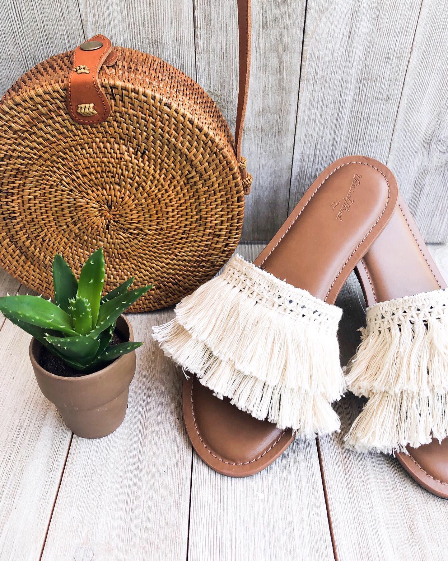 But I’ve been stalking fringe sandals on my Pinterest lately and made my own pair! So I bought fringe trim from Amazon.