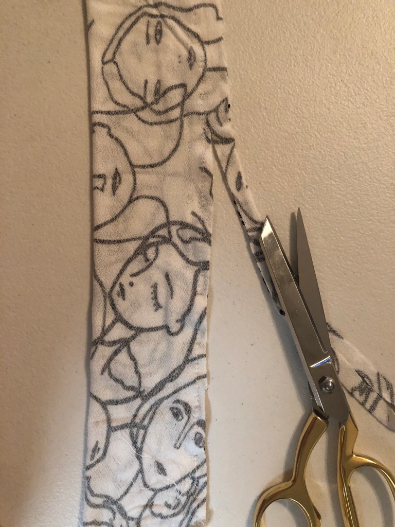 2. Cut your fabric lengthwise (head circumference + 5 inches) and 6 inches wide.