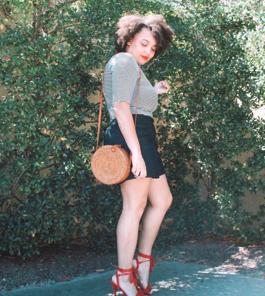 I have to admit that I love this combination together. The Adrienne blouse adds the perfect feminine balance to the shorts. The shorts are more structured but I love the casual waistband in the back. What other combinations do you think will work well together?