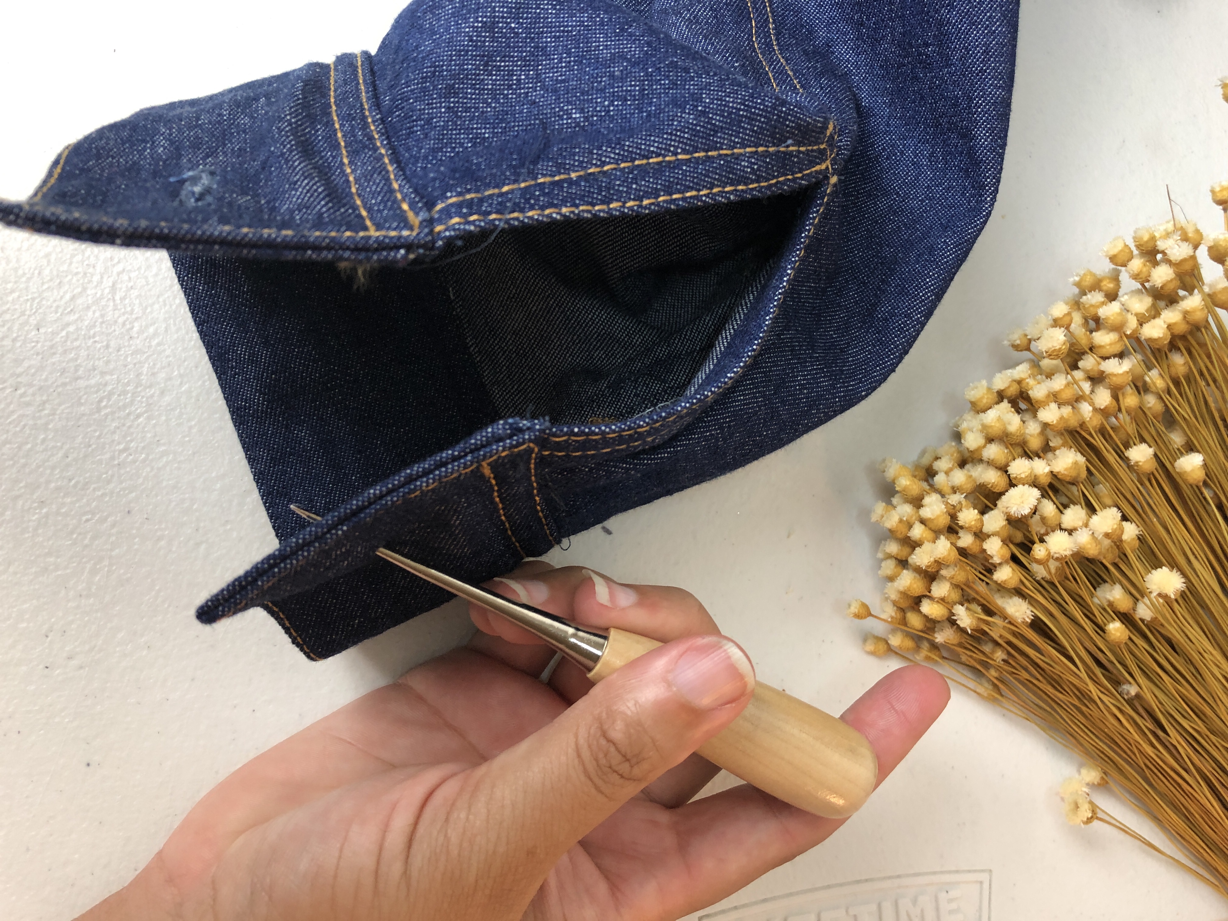 Here it is! The second part of my “Sewing with denim” series and today I’m sharing a really easy and stress free way to add heavy duty snaps to any denim project. I know that adding snaps or buttons can give you anxiety. And the worst feeling in the world is to complete your project with all that beautiful top stitching just to have your project ruined by a terrible install experience. I’ve been there -even after doing a test run.
