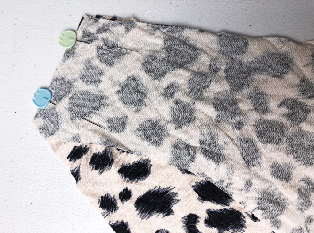 Next, I overlap the edges of the elastic at the seam to avoid bulky-ness.