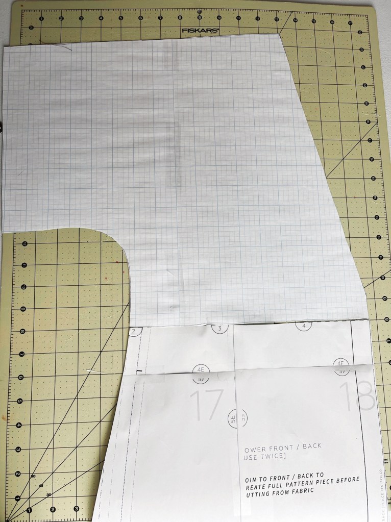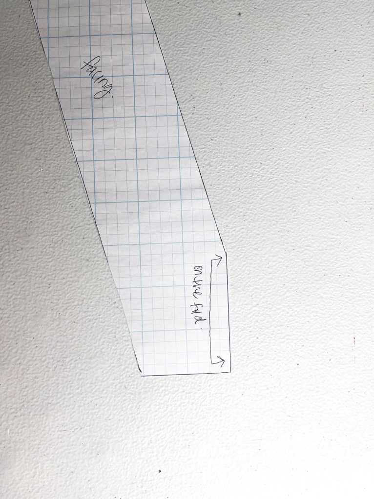 I retraced the top of the bodice with the new neckline. Then I redrafted the facing so that it would fit my new neckline. I did this by tracing the neckline on the bodice so that it would fit like a puzzle piece.