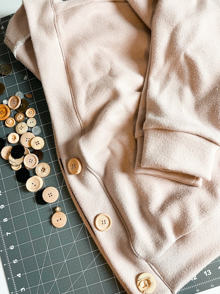 My biggest hurdle was probably adding the button holes. The fabric was SO thick that I ran into problems with the button hole maker on the machine recognizing that there was fabric. I tried the extra plate that comes with my button hole foot but that seemed to exacerbate the issue. So I actually put my interfacing on the underside of the front placket to help the foot move around the fabric. This honestly took the longest part. And then I hand sewed my buttons on because the buttons were really chunky. I was not willing to find out what would happen if I used that on my machine.