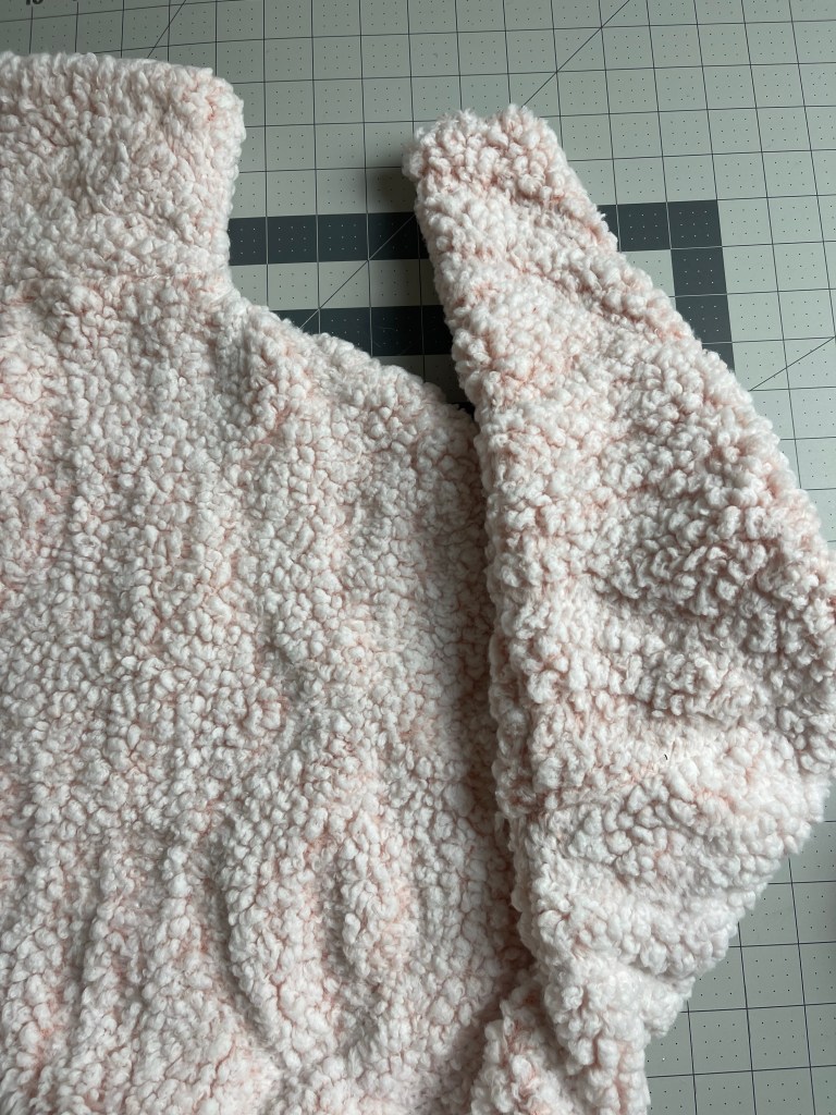 Then I cut into the blanket using my drafted pattern. If I have to offer one piece of advice about this part – make sure that you are cutting where it makes sense. For example, if you blanket has a cable design or nap/pile going in a certain direction, you might have to either fussy cut or be more intentional about cutting.