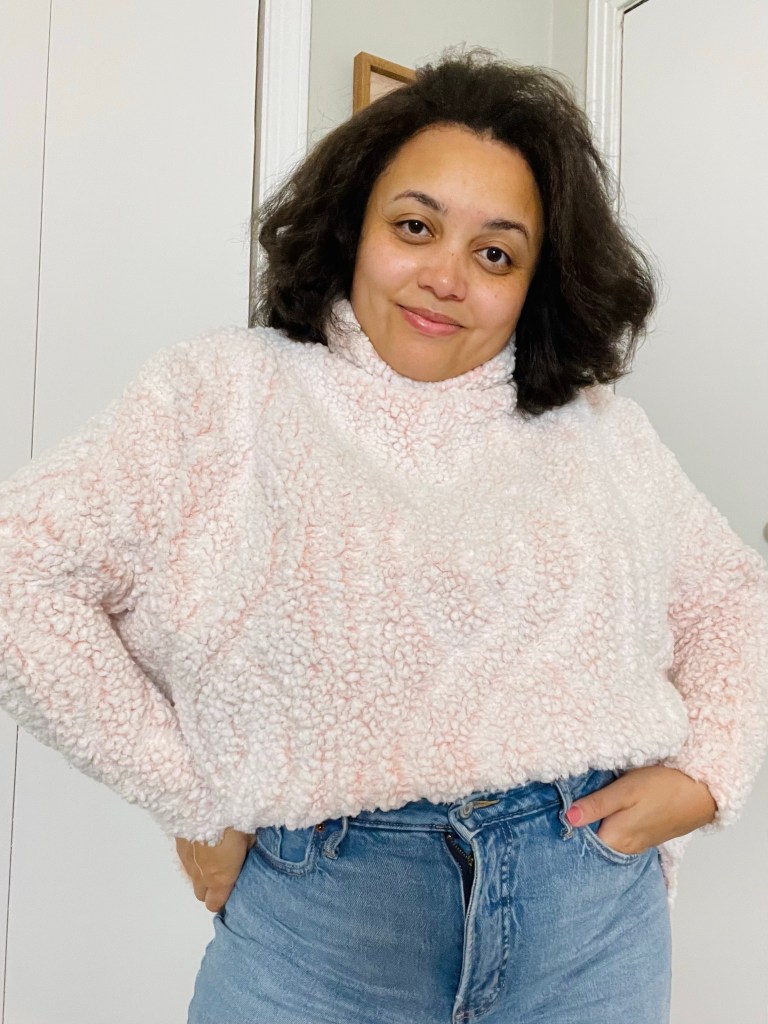Hey sewing friends! If the title brought you here – then you read it correctly. I used a throw blanket to make a sweater.