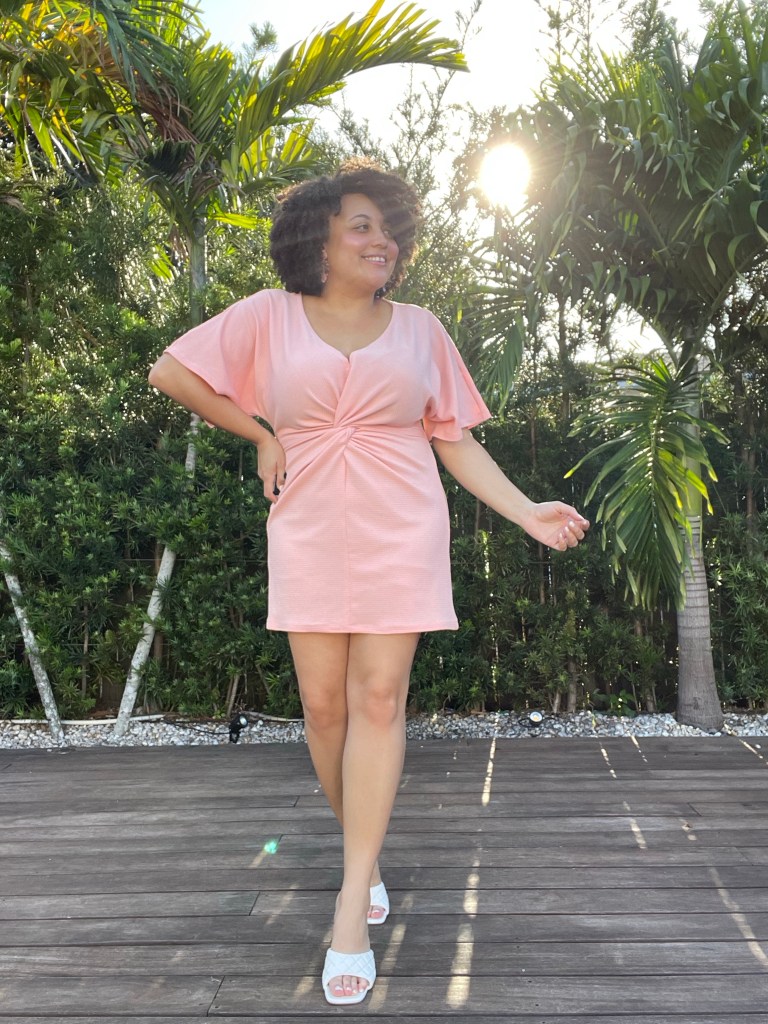For Friday night went to Mayami restaurant followed by bottles and VIP at LIV. I decided to wear McCall’s 8339. I used a blush pink bullet textured knit fabric for this look. I previously did a pattern review on this dress. I’m linking that here.