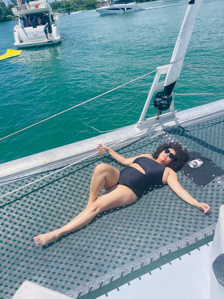 The next day, we wore all black on a Catamaran boat ride. I sewed up a black version of the Marley suit by Edgewater Avenue. I’m linking my sewing vlog for the bathing suit here. The link in the video will have all fabric and pattern information.
