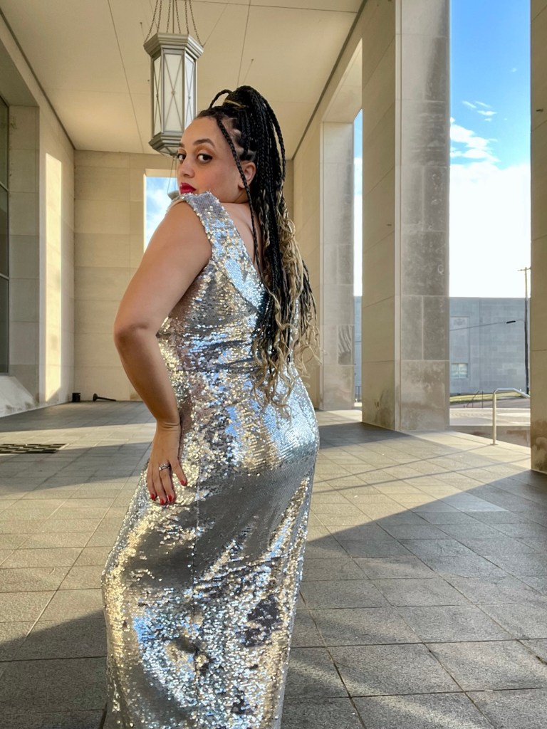So, to catch you up… I made a NYE dress out of sequins. While I didn’t have anywhere to go, I honestly wanted to make something gorgeous and over the top to close out the year. I used McCall’s M7683 and stretch sequin fabric from Hobby Lobby.