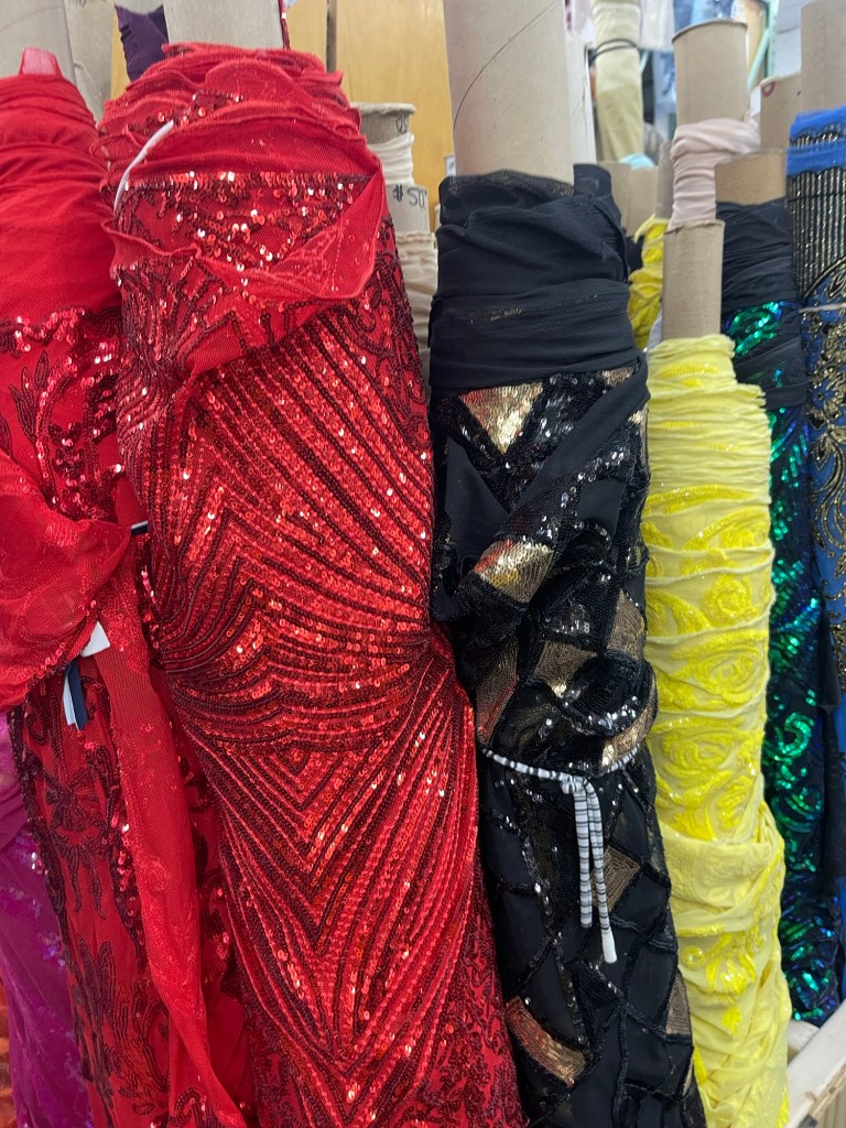On Sunday before the Beyonce concert, we went to Gail K. Fabrics. This was our first time at this store. Stacie found a few things right away, but I was super overwhelmed. Every where I turned there was something shiny and beautiful, haha.